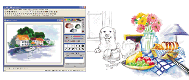 | 「絵がうまかったらいいのになぁ〜」と思ったことはありませんか? ご安心ください。パソコンを使えば、まるでプロが描いたような絵を描くことだってできるのです。 好みの色で自由自在に、絵筆の大きさと形や、絵の具と水の量を調節しながら、本物の水彩画と同じような感覚で絵を描くことができます。 「でも難しいんでしょう?」 |