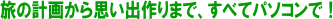 今の時代は、インターネットに接続されたパソコンが1台あれば、自宅にいながら各地の観光案内を見たり、切符や旅館の手配をすることができるんです。